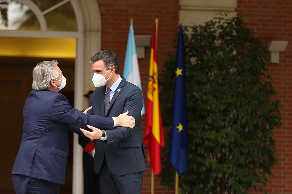 «Argentina y España defendemos la liberación de las vacunas, que sean consideradas un bien público y global», señaló el gobernante europeo desde las afueras de la Casa Rosada, sede del Gobierno argentino, durante una rueda de prensa.