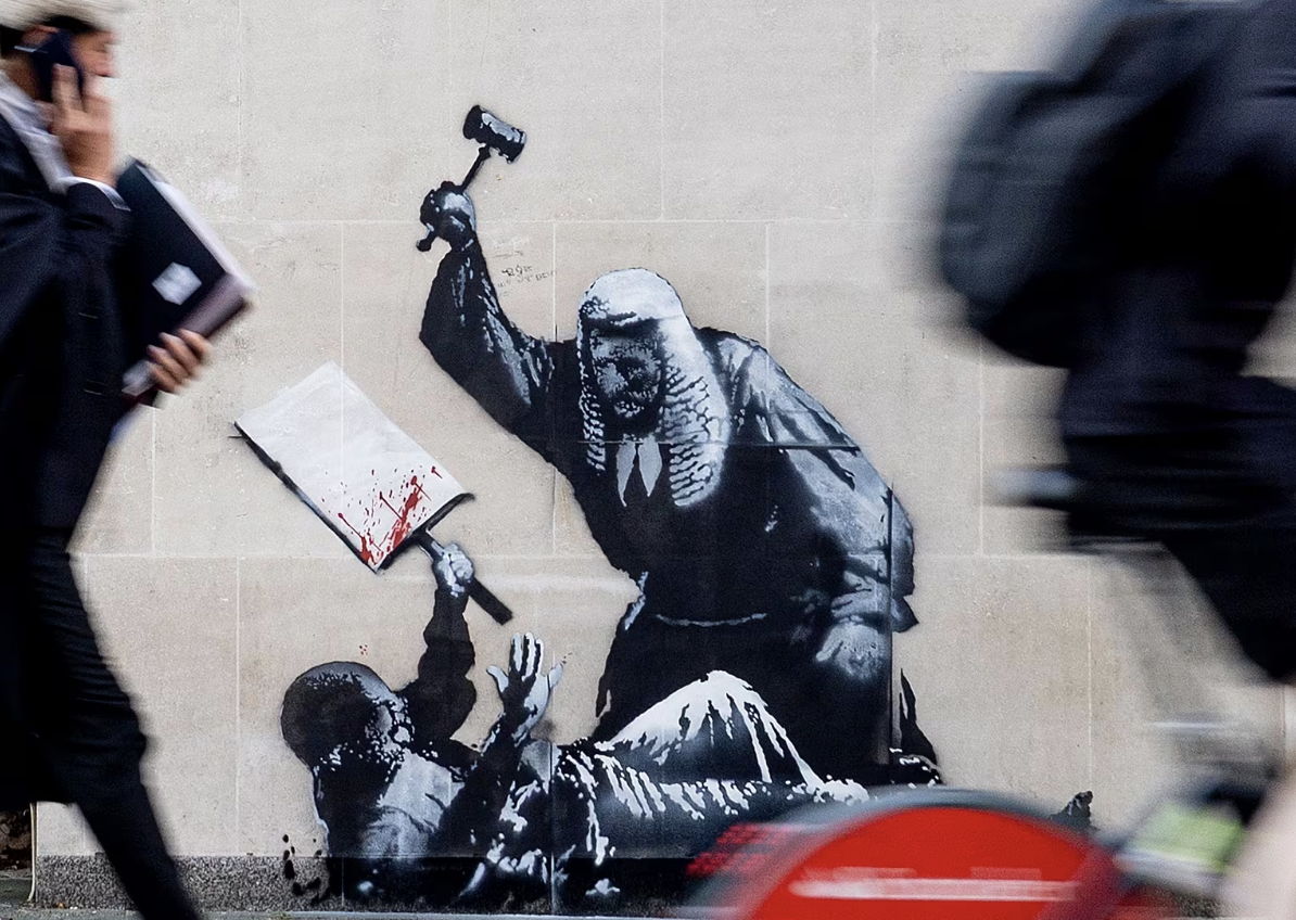 En este caso, la ubicación del mural en uno de los edificios judiciales más emblemáticos del Reino Unido convierte el gesto en un choque frontal entre arte urbano y normas de conservación patrimonial.