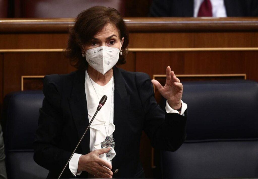 Calvo también se ha referido a la presidenta de la Comunidad de Madrid, Isabel Díaz Ayuso, a la que ha afeado que dijera que «daba igual lo que dijeran las leyes y el tribunal de lo contencioso-administrativo en relación a las listas del PP». «Conviene que conservemos el tono parlamentario», ha espetado la vicepresidenta.