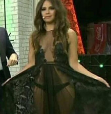 La prenda elegida por la presentadora, transparente casi por completo, dejaba poco a la imaginación y parecía más un ‘picardías’ que un vestido de noche, y así lo han puesto de manifiesto los internautas bajo el hashtag #Pedroche.