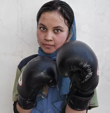 Azeeta Rafaat es una de las 200 mujeres afganas que el fotógrafo Gervasio Sánchez y la periodista Mónica Bernabé retratan en la muestra. Tiene 36 años. Su lucha está encaminada a lograr la desaparición de la violencia que se ejerce sobre la población femenina en su país. En el año 2005, Azeeta, junto a otras 68 mujeres, llegó al parlamento afgano. Decidió presentarse a las elecciones después de que un miembro del gobierno de Afganistán le animara a ser candidata, ya que se había convertido en la voz que defendía los derechos de su comunidad. Posteriormente tuvo que huir a Suecia con sus cuatro hijas y desde 2015 tiene nacionalidad sueca.