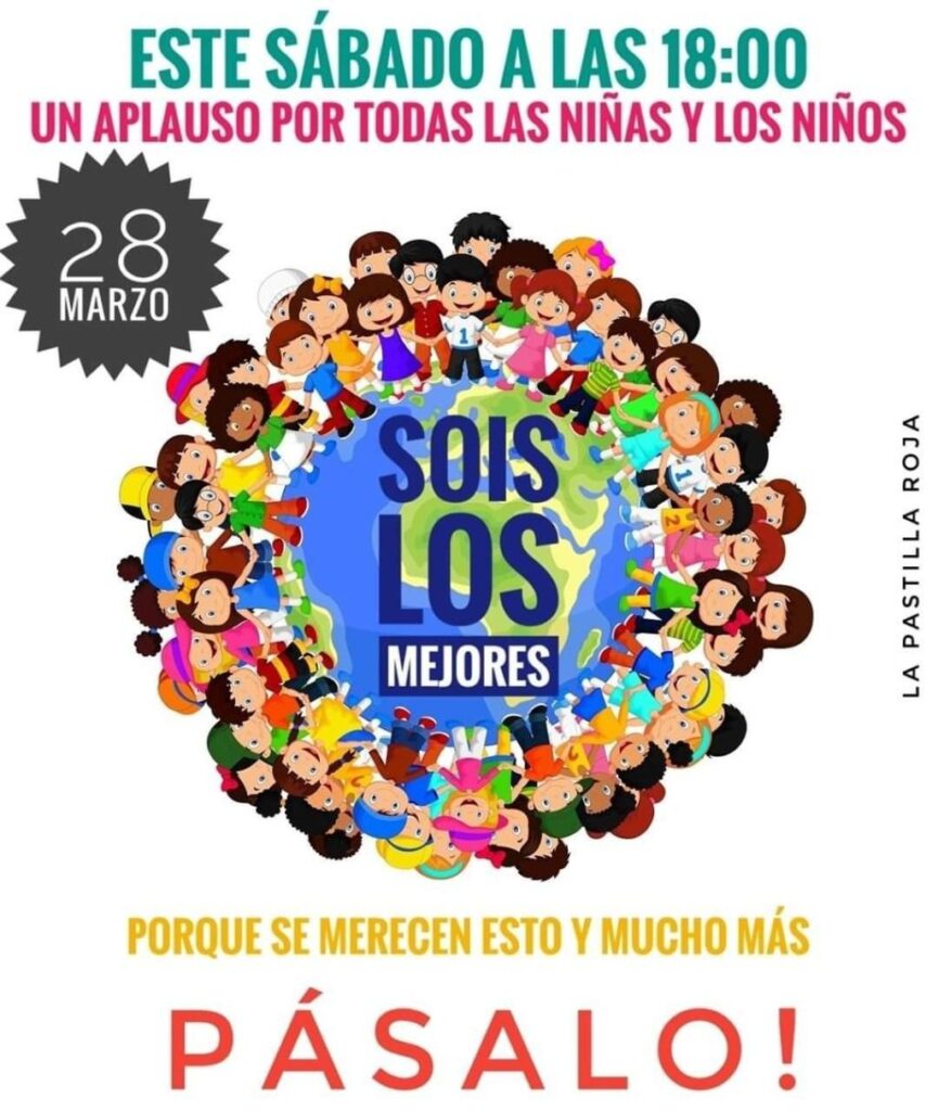 Este sábado 28 de marzo se ha convocado, a través de una cadena de Whatsapp y difusión por redes sociales, un aplauso por todos los niños y niñas de España, que están confinados en sus casas después de que el Gobierno decretara el estado de alarma por el coronavirus.
