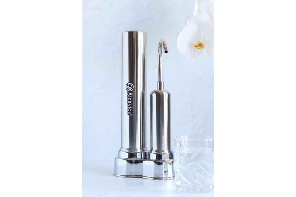 Uno de los productos estrella de Alcavida es el filtro Ionizador para el grifo, cuya función principal es ionizar el agua con un doble sistema de filtrado, lo que permite alcanzar una mejor purificación del vital líquido, así como una ionización perfecta. Este filtro está fabricado a partir de un resistente y duradero acero inoxidable 304, con una base de plástico cromado libre de BPA y ftalatos. Los cartuchos que lo forman ofrecen un excelente rendimiento, ya que cada uno de ellos tiene una vida útil de tres meses.