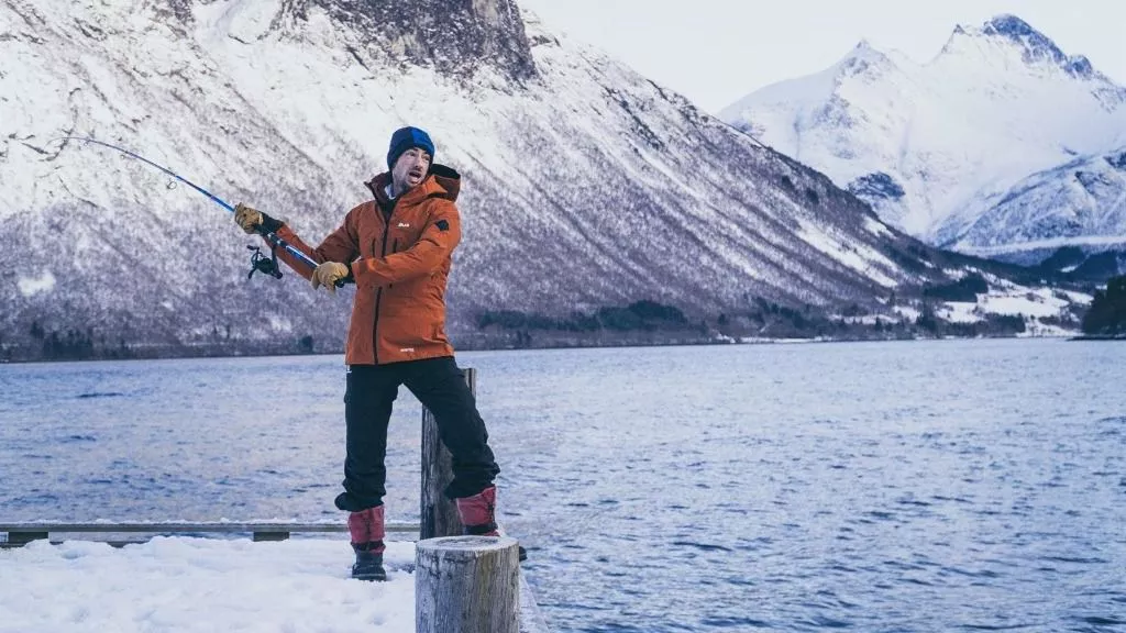 Kilian Jornet lanzando la caña de pescar