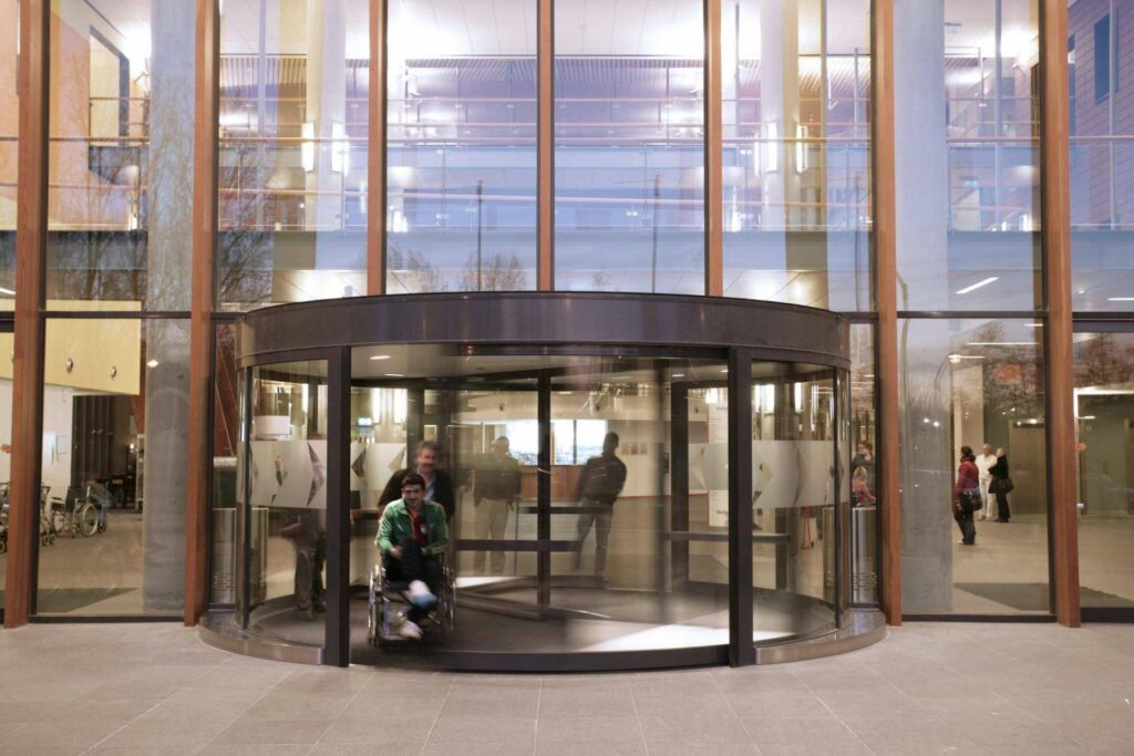 El amplio catálogo que maneja ASSA ABLOY le permite prestar asistencia a sus socios para todas las necesidades de puertas automáticas, desde el diseño hasta la instalación y el mantenimiento. Disponen de puertas automáticas peatonales ya sean correderas, giratorias o batientes, además de una amplia variedad de puertas industriales, seccionales, rápidas de alto rendimiento, para grandes dimensiones y también equipamientos para muelles de carga. Además, cuentan con sistemas de control de aforo, activadores sin contacto y sistemas de automatización de puertas residenciales. Esto les permite equipar cualquier tipo de negocio o comunidad de vecinos con entradas que dan valor añadido, mayor confort, eficiencia, accesibilidad y seguridad. Sus soluciones de acceso son higiénicas y ayudan al ahorro de energía.