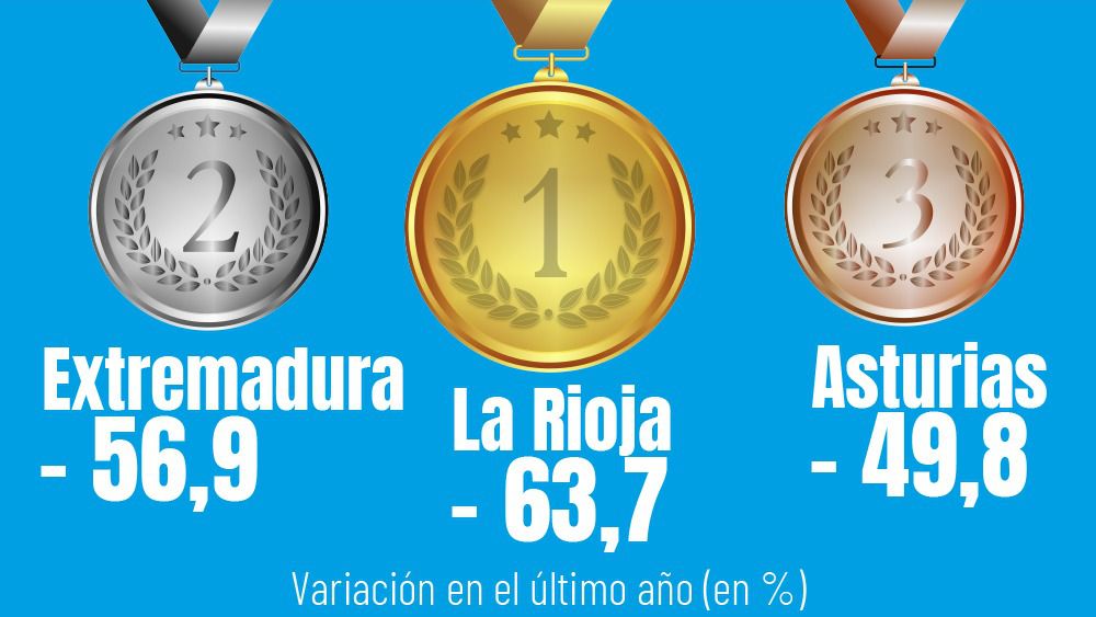 La Rioja (–63,7%), Extremadura (–56,9%) y Principado de Asturias (–49,8%) registran las mayores bajadas anuales.