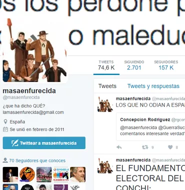 El popular perfil se despide después de que la red social le haya solicitado un número de teléfono para comprobar su identidad. Los 157.000 seguidores de @masaenfurecida no podrán disfrutar más de los mensajes satíricos y críticos de esta popular cuenta de Twitter. El perfil desaparecerá tal y como ha hecho público la revista Mongolia, donde colaboraban habitualmente.