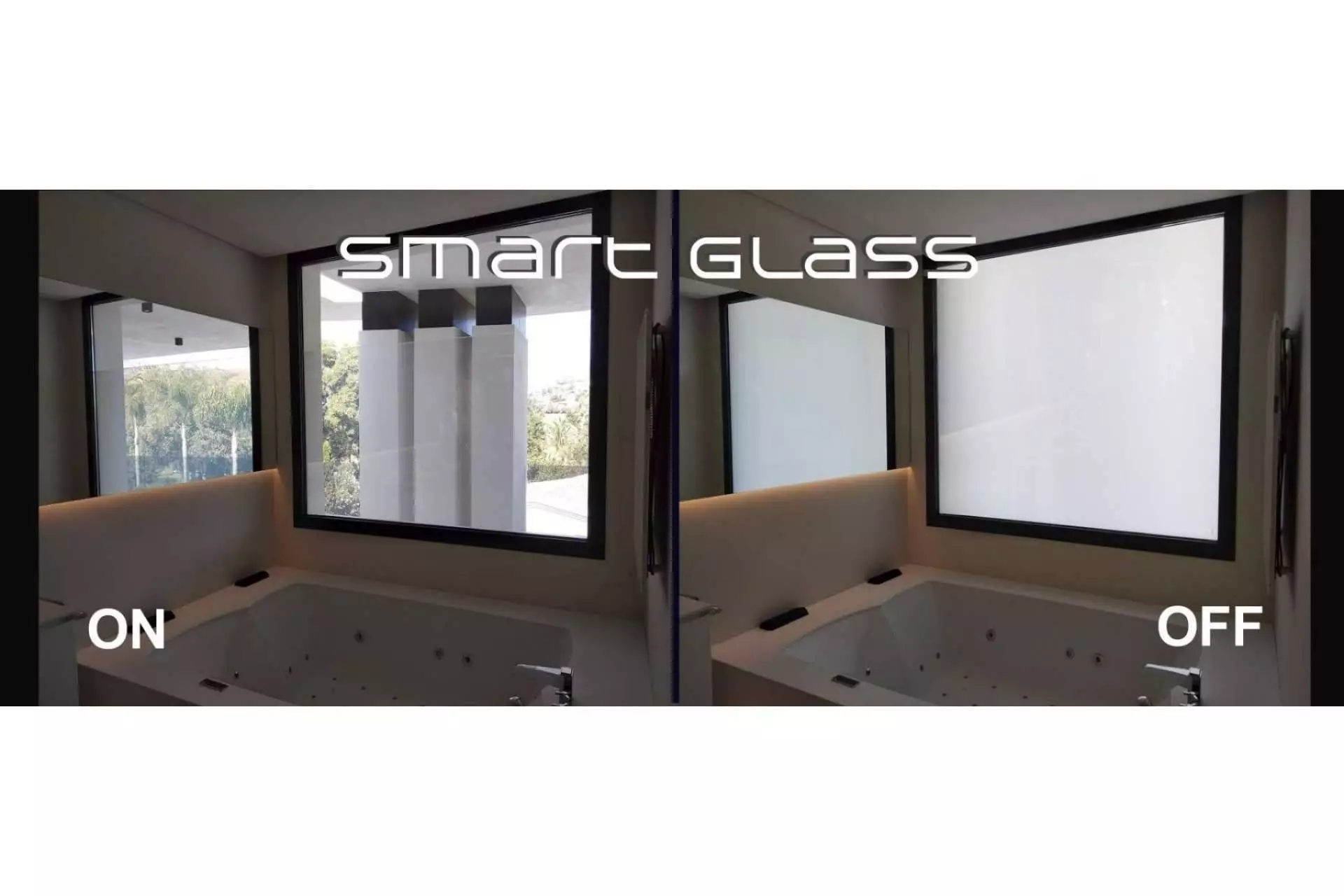 La tecnología actual permite que un cristal que muestra el interior de un espacio se convierta en una superficie opaca para asegurar privacidad cuando así lo requiera el usuario como por arte de magia.