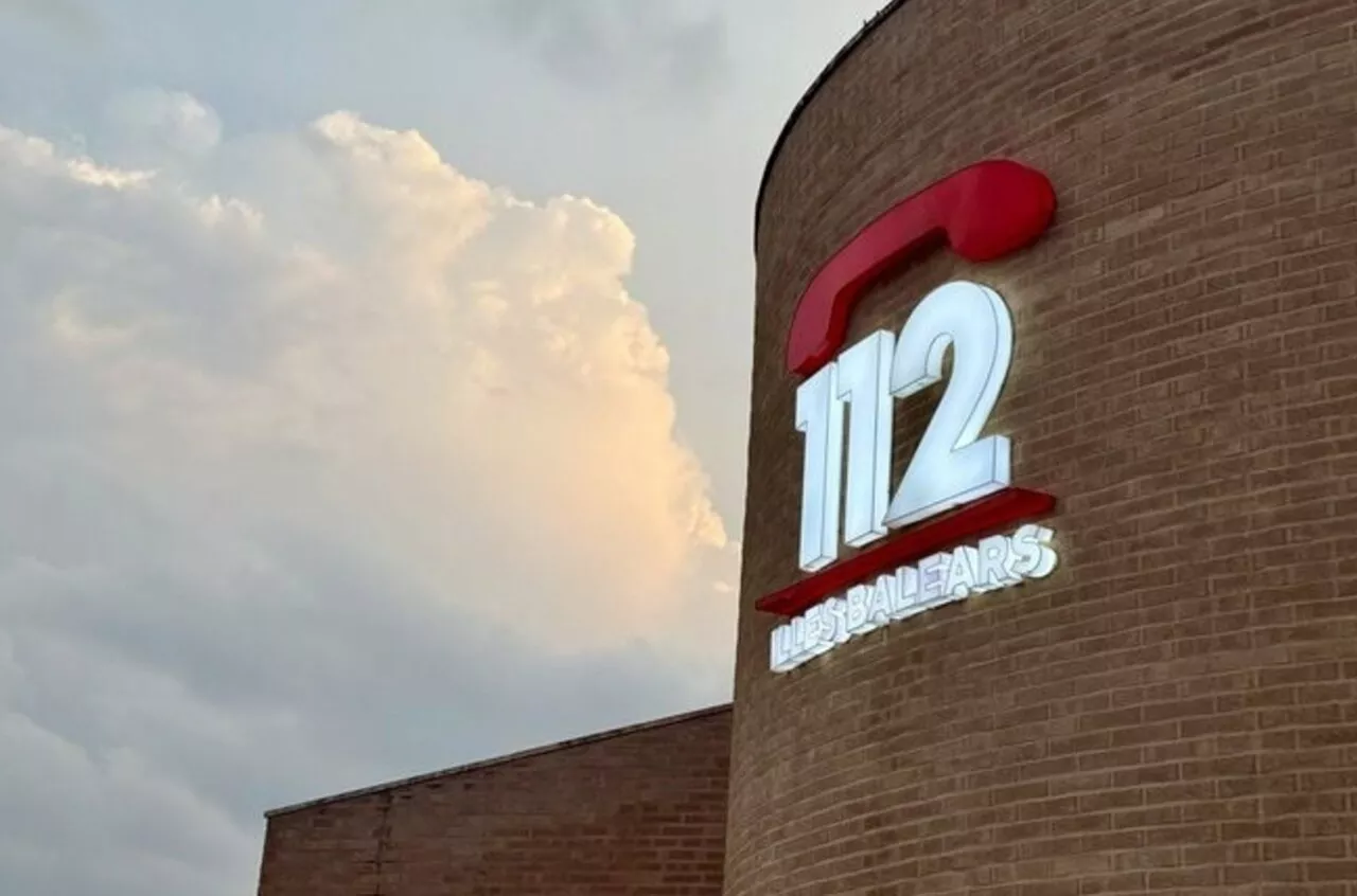 El logotipo del servicio de emergencias 112 en Baleares destaca en un día nublado.