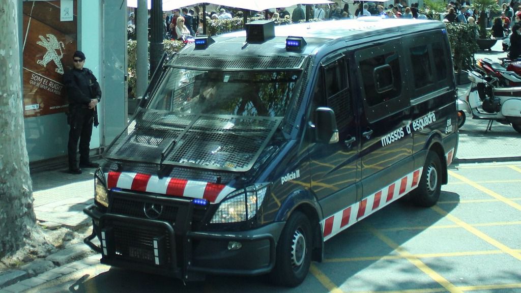 Los Mossos d’Esquadra blindan los accesos a L’Auditori de Barcelona ante las protestas convocadas por los Comités de Defensa de la República (CDR) por la asistencia de Felipe VI al acto de entrega de despachos a la nueva promoción de jueces.