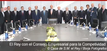 El monarca de España ha almorzado con la élite empresarial, reunida en el Consejo Empresarial para la Competitividad que preside César Alierta, para conocer de primera mano las opiniones de estos empresarios para luchar contra la crisis, según un comunicado de la Casa Real.