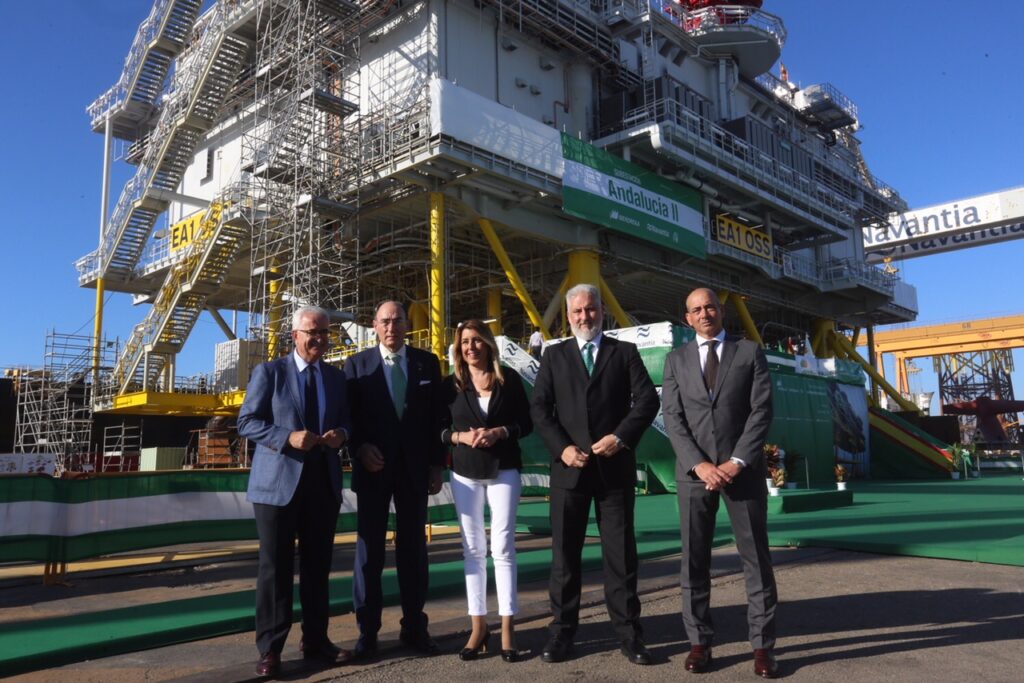 Iberdrola y Navantia han celebrado el acto de entrega de la subestación eléctrica Andalucía II, desarrollada por la empresa de construcción naval íntegramente en el astillero de Puerto Real (Cádiz), que se instalará en el parque eólico marino East Anglia One que la compañía eléctrica española pondrá en marcha en Reino Unido.