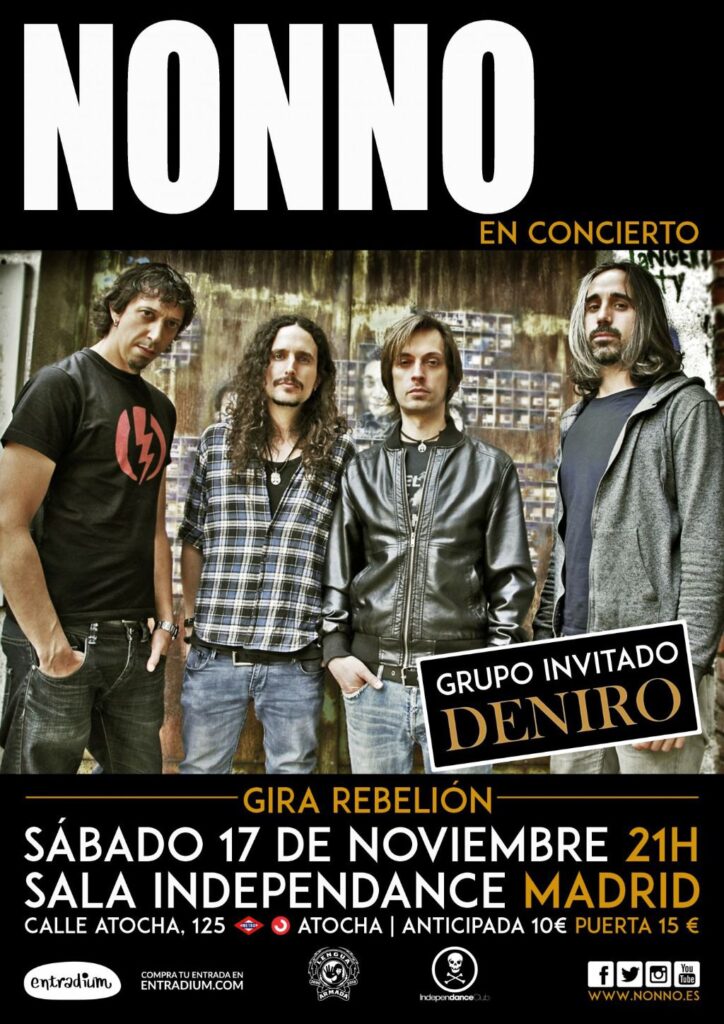 Nonno presenta este sábado en Madrid ‘Rebelión’, el tercer álbum de estudio de esta banda de rock. La cita será en Independance Club, donde estarán acompañados de los míticos Deniro como banda invitada presentando temas de ‘Nada Puede Contigo’.