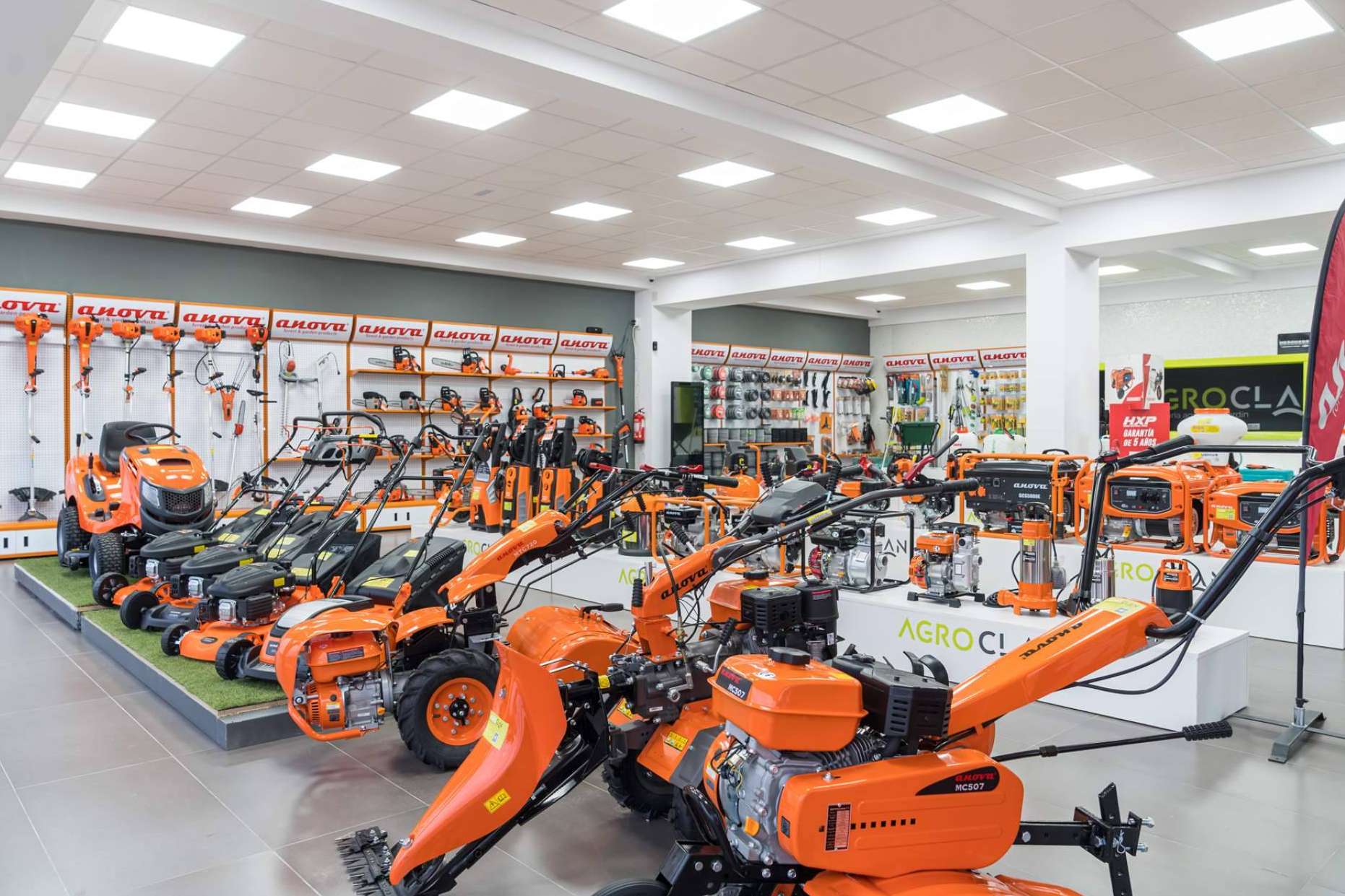 Agroclan es una compañía que ha cosechado una destacada experiencia vendiendo y reparando todo tipo de equipos y maquinaria para la agricultura y la jardinería. Para ello, sus instalaciones cuentan con un amplio y moderno salón de exhibición, donde ofrecen las últimas novedades del sector. Son distribuidores de marcas reconocidas como Anova, Först, Ferris, Agria, Solis, Kioti y Total.
