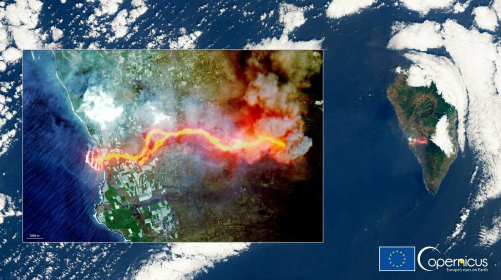 El satélite Sentinel-2 capta el río de lava desde el espacio.
