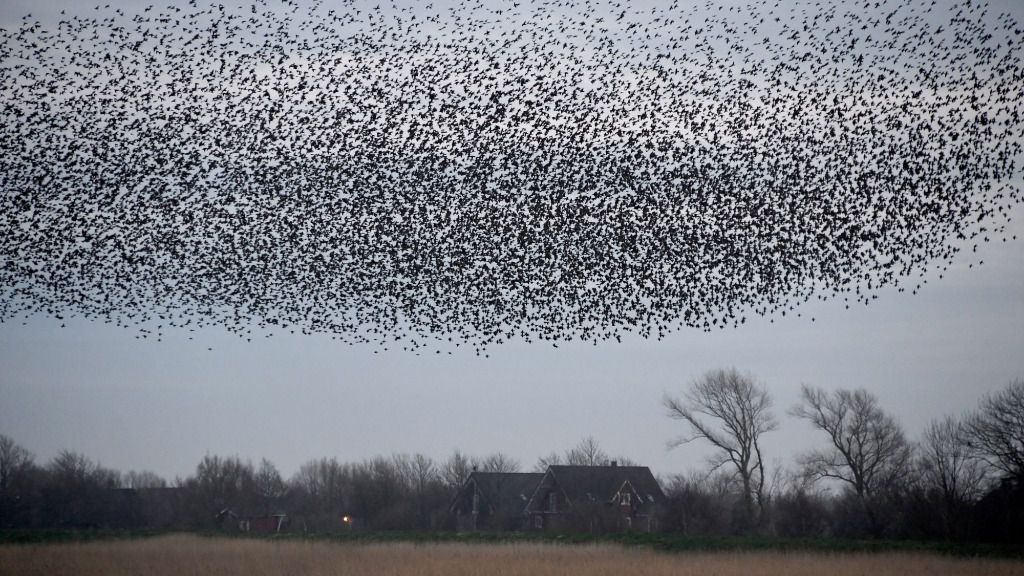 Es un fenómeno natural que se repite cada año al inicio de la primavera, a finales del verano y en el otoño en estos parajes. Cientos de miles de estorninos se reúnen en una escala que hacen en su migración entre la región de reproducción en el norte y las zonas más cálidas del sur hasta que de repente levantan vuelo en gigantescas bandadas que como grandes nubes negras llegan a veces a oscurecer el sol.